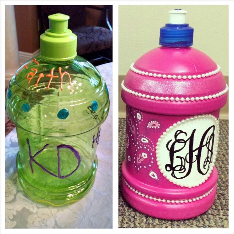 Number two, the jugs... My first experience with a hayride jug was a quick trip to Meijer. Bought a jug and used a bit of puffy paint… X, WRONG. Totally wrong. First with the rush on jugs, you have to remember months in advance to purchase them; otherwise, you will go looking for them and find all the stores shelves completely sold out. This my friend, is your first jug-stress. Now if you are fortunate to find them, next comes the decorating. These jugs are works of art that will be treasured by the recipient, until such day as they are married to someone else and must dispose of this relic from their wild college days. These jugs rival Picasso, truly. The creativity and thought that these women put into them is unbelievable. My hope is that the recipient would be very appreciative. As well for noncreative people, like myself, this is another added source of angst.