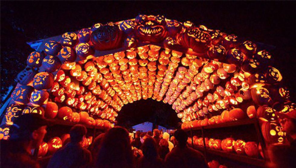 There are not many locations for this but Old Westbury Gardens, on Long Island holds an event called Rise of the Jack O'Lanterns and it is really cool. Basically, you walk through a path of 5,000 all amazing and awesome hand-carved pumpkins! There's so many different carvings in these pumpkins like Disney characters, Charlie Brown, animals and so much more. You'll be amazed at what these people can do. The artists spend about 10-15 hours carving each pumpkin! It's definitely appropriate for all ages and you will have tons of fun! They also have hot chocolate and other things you can buy.