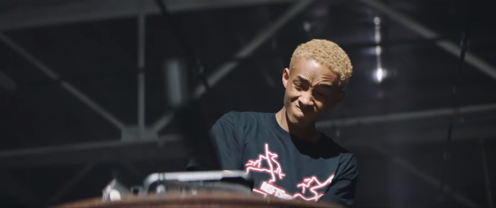 Eventually, he takes off his helmet and its Jaden Smith and he destroys the VR Headset.