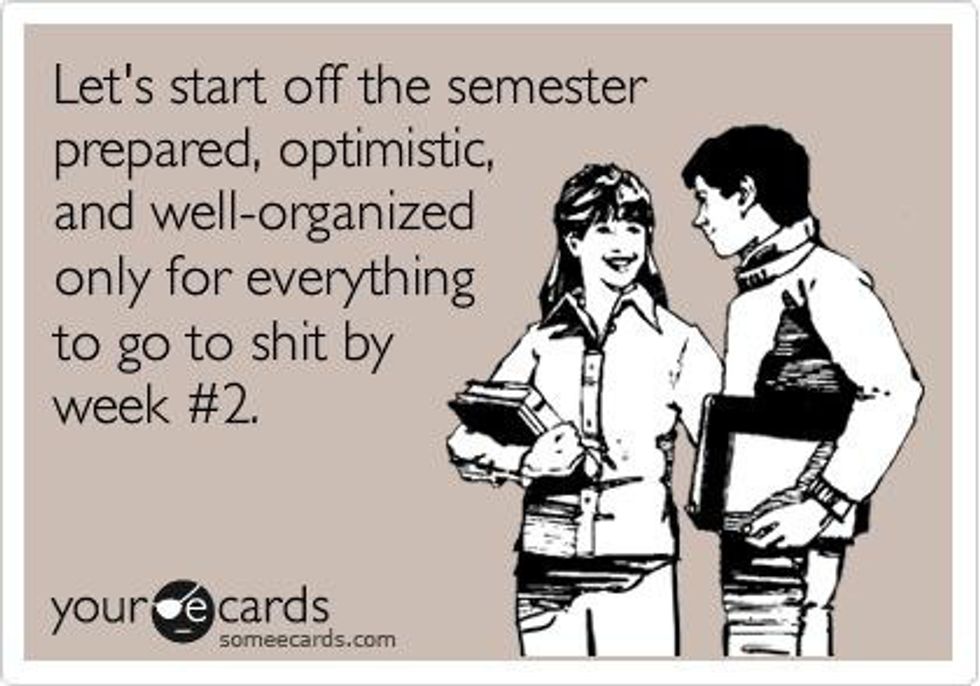 Fall Semester: starts off all organized, almost excited to get back on the "grind"