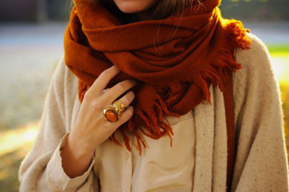 Scarves are a girl's best friend. Any type of scarf will do for a table this season but I suggest an infinity scarf. Infinity scarves have become a huge trend in the past couple of years. Not only are they warm, but also they are completely acceptable to wear indoors which is a plus. You can find them in just about any length. They pair nicely with almost anything and can add dimension to even the simplest of outfits. From fabric to knit, you can find infinity scarves at most retail stores this time of the year unless, of course, if a grandma-made scarf is an option which is always the best choice!
