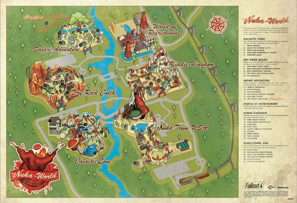Bethesda Game Studios has created "Nuka-World," the sixth and final DLC (downloadable content) for "Fallout 4," is set to release on August 30, 2016. The DLC is rumored to be larger than "Far Harbor," which released on May 19, 2016. In this DLC you will be taken to Nuka-World, a pre-war theme park based on the popular fictitious drink, Nuka-Cola. The only way you can get the first quest to have the ability to reach Nuka-World is by being level 30 or greater (which, let's face it: if you love the game as much as I do it really doesn't take that much effort). When you arrive there you discover that Nuka-World is occupied by a faction of raiders. Through a reveal from the official Fallout Facebook page it appears that you can settle raider camps and have raiders at your disposal to attack and capture other settlements. There are several new quests with the DLC as well as 10 new achievements to earn, which were shown through a release of PS4 trophies. Nuka-World features a number of different zones to the park that you can explore. They are: World of Refreshments, Safari Adventure, Nuka-Town USA, Kiddie Kingdom and Galactic Zone.