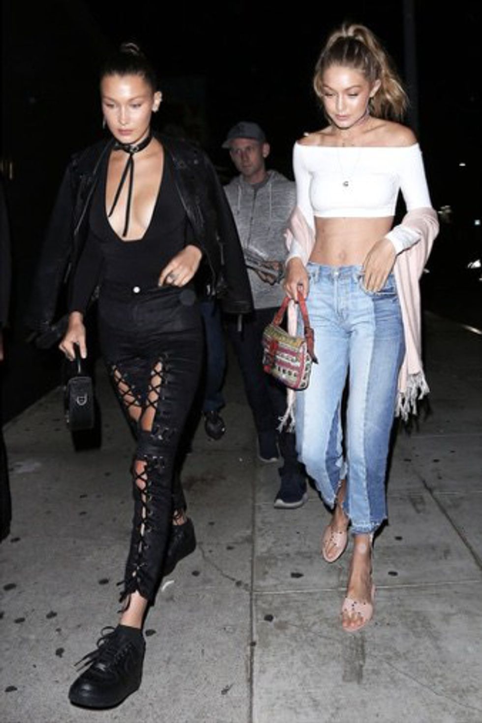 The oh-so-fabulous Hadid sisters are always rockin' the latest styles. Bella's rope choker, and Gigi's bandana scarf are both cute and affordable! Simple accessories that add to any simple tank or tee, or in this case plunging neckline bodysuit and leather jackets.