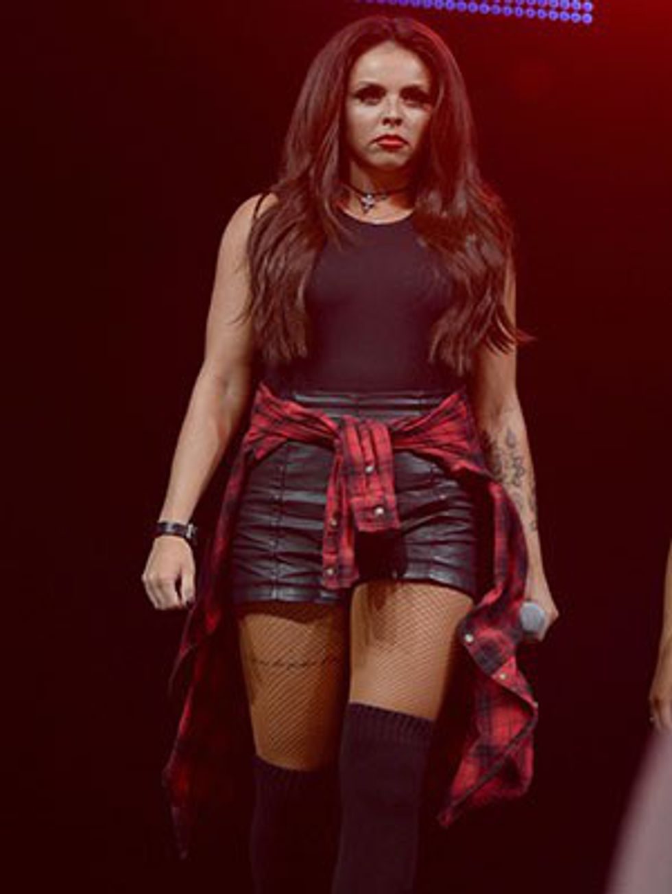 This look is easily thrown off with the extra long skirt. The super high high-waisted skirt distracts our attention away from the trendy jackets and shoes. Instead, find a simple mini skirt like Georgia May's with a iconic bomber jacket to be the ensemble focus. (+5 Bonus point for the jacket's buttons and logos, G. Extra stylish!)