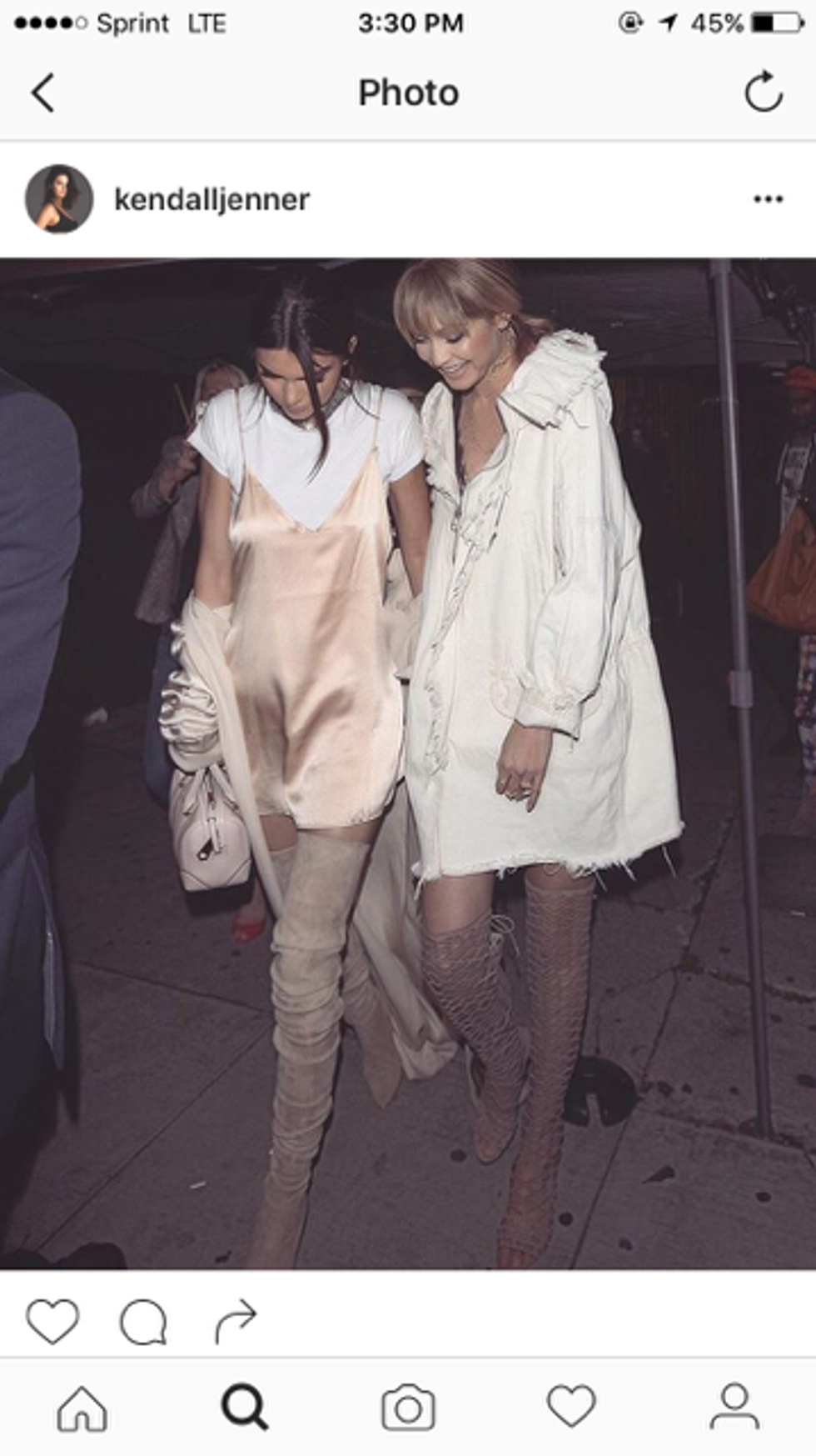 Leave it to Kendall Jenner to bring back an old trend in an even trendier way. The 'It Girl' showed the new and improved tank/tee duo, showcasing a silky spaghetti dress over a plain white T. Since photographed, other Jenner's and Kardashian's have picked up the trend. This one is basically effortless and is great for those messy bun/ get ready in 5 minute days.