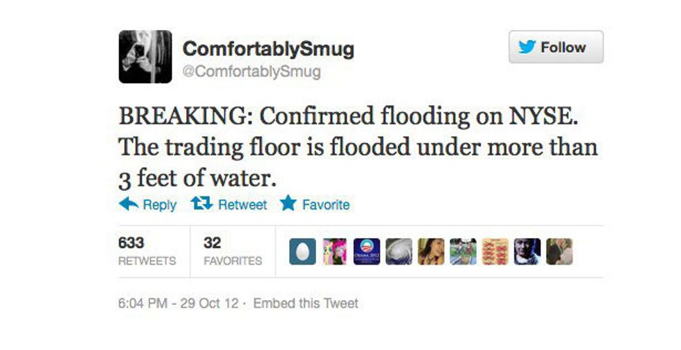 For instance, when Hurricane Sandy hit in 2012, a hedge fund analyst named Shashank Tripathia Tweeted, “BREAKING: Confirmed flooding on NYSE. The trading floor is flooded under more than 3 feet of water.” The Tweet has repeated hundreds of times and it was even reported on by reputable news sources such as CNN and the Weather Channel. Obviously, these news sources would not have repeated the false information had they done their due diligence to the public and contacted the source instead of worrying about being the first to report it on their own media platforms. Tripathia’s actions created the question of whether an individual could be prosecuted for using social media to make false claims during a crisis for the purpose of inciting further panic.