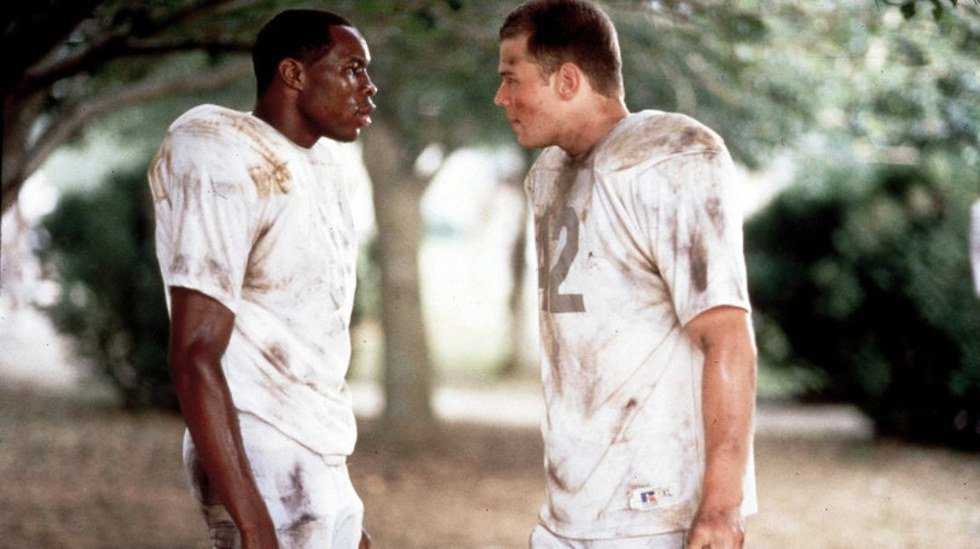 Near the end, white teammate Gerry Bertier (Ryan Hurst) finds himself in the hospital after a car accident. Julius, who has become one of Bertier's closest friends, comes to his hospital room to visit. When the nurse sees him, she politely mentions that only family is allowed in to visit. Bertier looks at her and says, "Alice, are you blind? Don't you see the family resemblance? That's my brother." Alice allows Julius to stay. Lesson: brotherhood is not defined by skin color. Rather, it is defined by kindness, compassion and love. We don't get to choose who we're related to by blood, but we do get to choose with whom we find brotherhood.