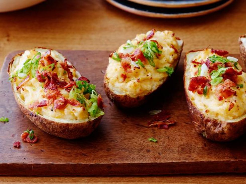 You can take the insides of the potato and mash them up to make fried potato pancakes, or bake them again and make loaded baked potato sliders.