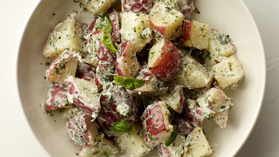 This is going to be the one to get some weird looks, but of you recook your potato salad you get nice, crispy, flavorful potatoes. Preheat your oven to 425º, if you have excess mayonnaise put your potato salad in a strainer and rinse some, but not all, of the mayonnaise off. Bake in the oven for about a half hour, but make sure you turn your potatoes.