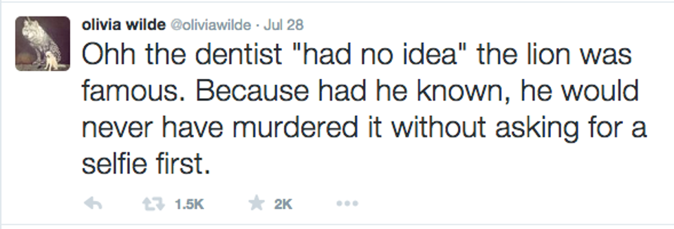 Celebrities - like actor and long-time "animal avenger" Ricky Gervais, and actress Olivia Wilde - have shared the public's anger and have taken to social media to express it.