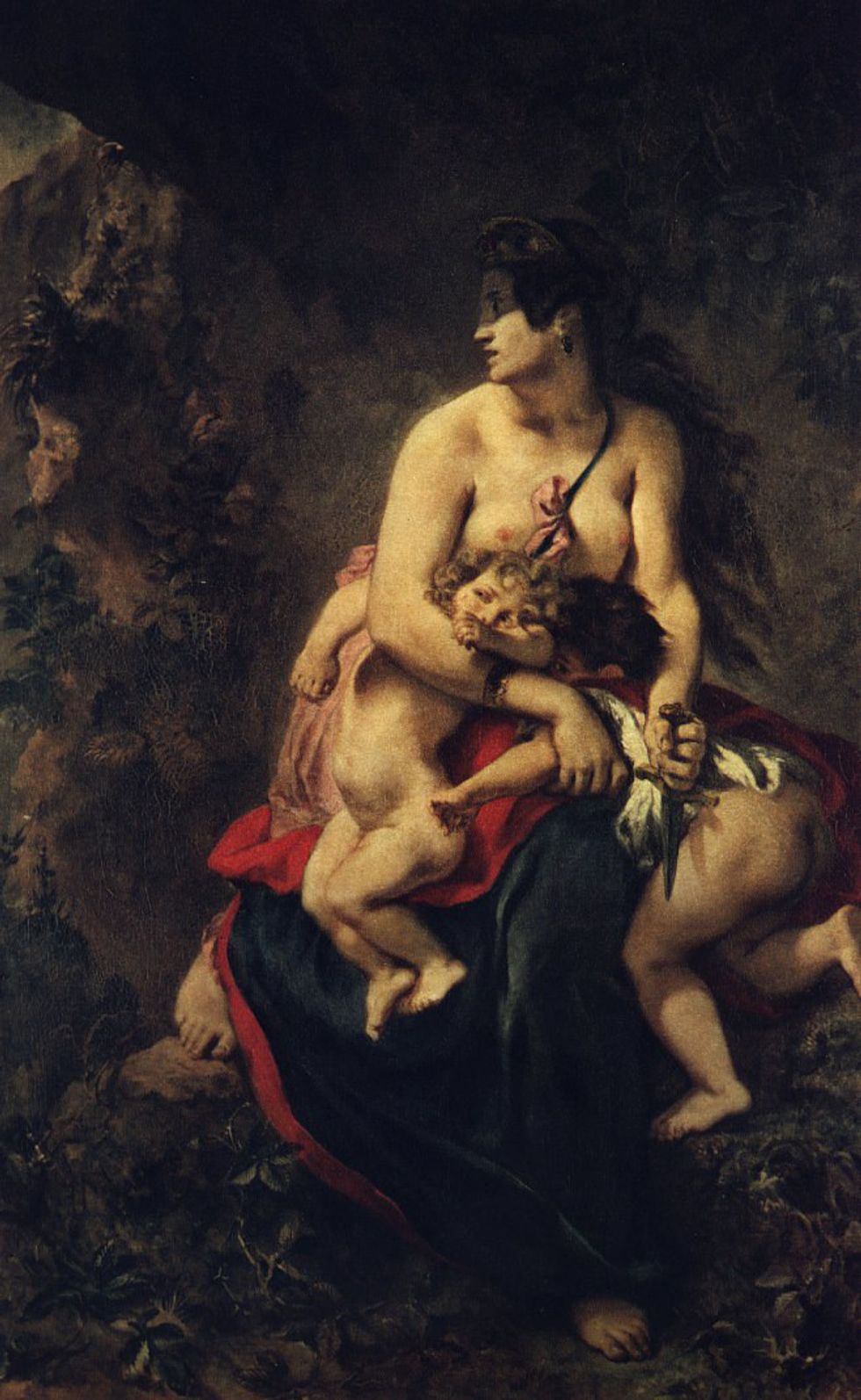 The tale of Jason and Medea goes like this. Jason had to go through many trials to receive a golden fleece that will allow him to take over his kingdom. Medea, being shot by Eros' arrow because his mother Aphrodite was sympathetic to Jason, assisted him. She used her witchcraft and in return she made him promise to take her with him to his home. So Jason and her have two boys and they live happily until Jason starts getting cozy with this king's daughter and decides to leave Medea and their children. Medea, being in a foreign country with no rights or citizenship, fears for her life. So for revenge she poisons the king and his daughter. Then she murders her children for further revenge and rides off on Helio's golden chariot. Or does she? In the Greek writer Euripides' tale, he added in the murder of the children to shock the audience. In the classic folk tale, the people of the king seek revenge and murder her children. So Euripides took it upon himself to take this classic, powerful character and twist it for entertainment.