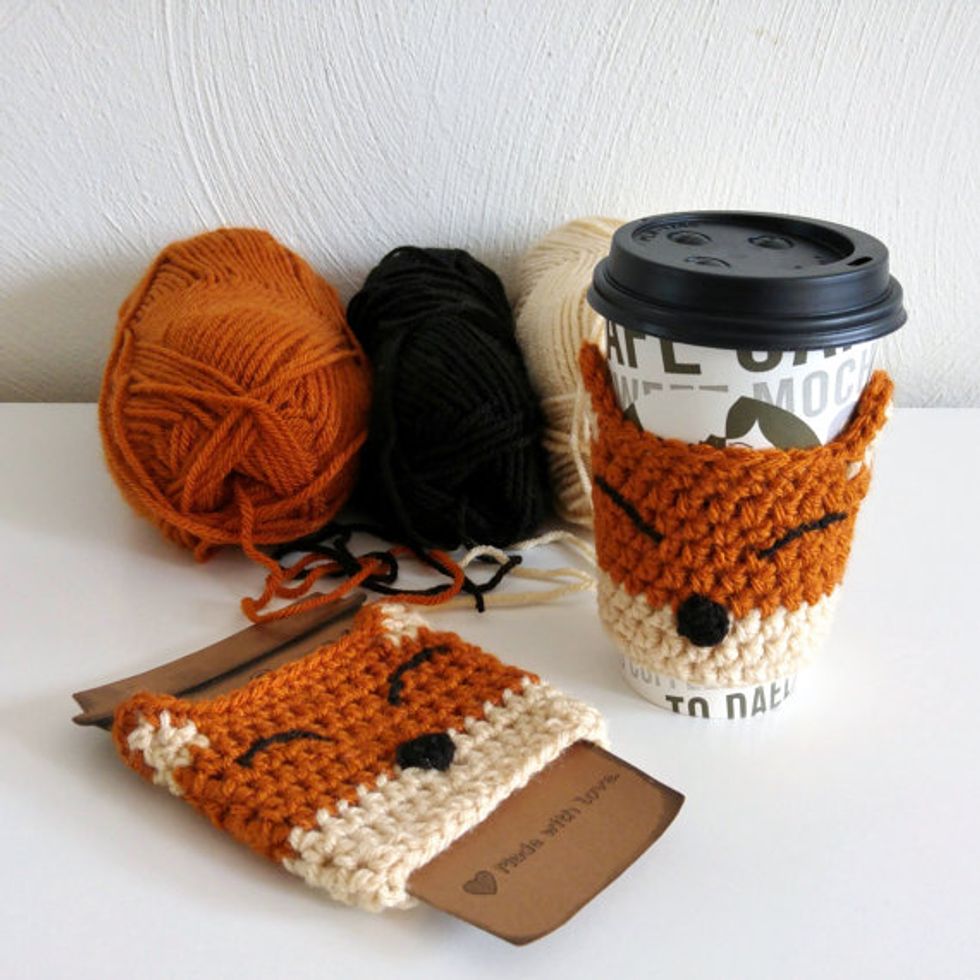 16. Crochet fox cup cozy