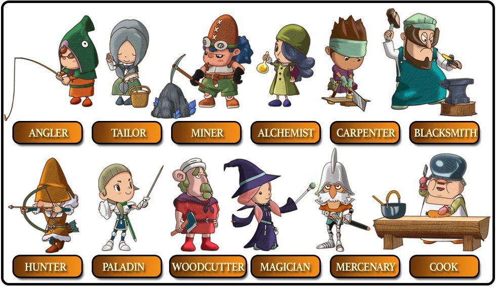 These are the different lives that you can choose from and their Masters. You learn from them and then eventually, you can become a higher level than them! It's a great way to do different things in town and make new friends.