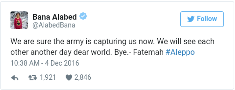 A day or so before seeing the film, I remember running into countless articles on Facebook describing the countless horrors of Aleppo. One article from the Washington Post, in particular, stuck with me. It was about a little girl named Bana al-Abed who had been documenting her and her family’s struggle via twitter. It was on December 4th when the girl’s mother Fatemah posted this final tweet