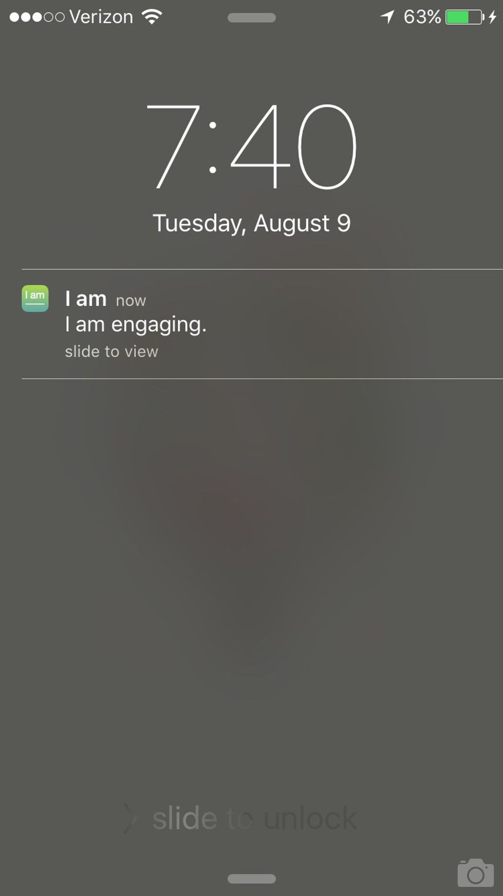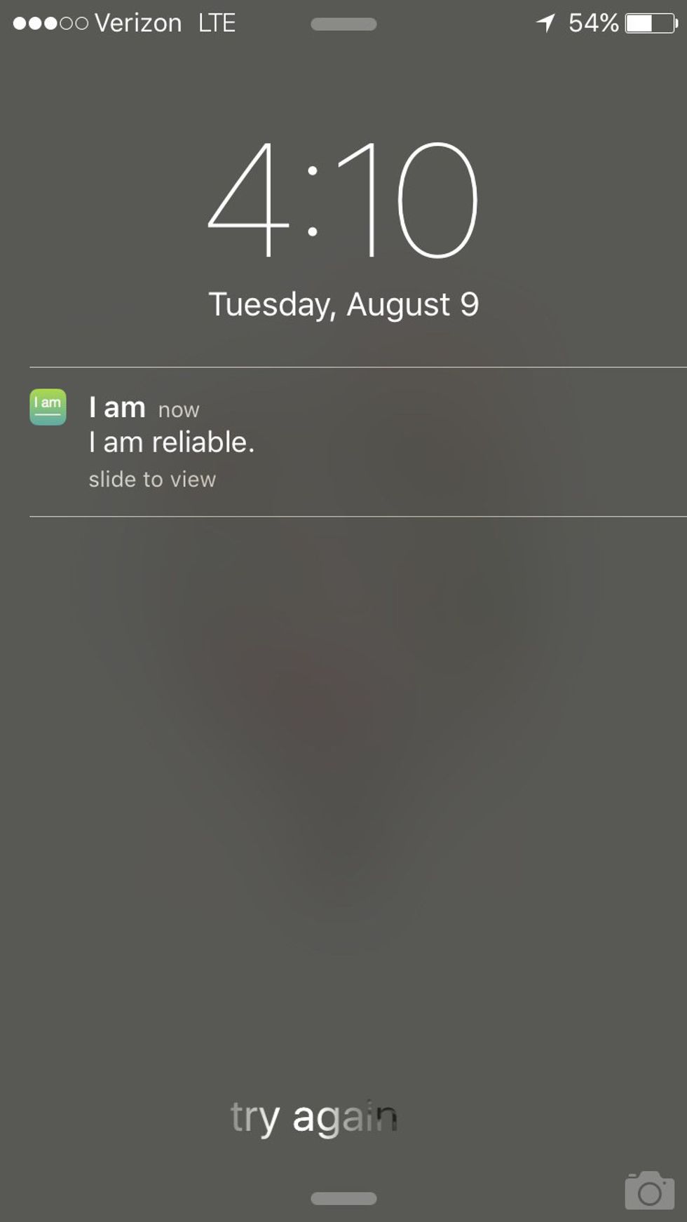 A few weeks ago I was on the app store, just looking around for no real reason when I came across the app “I am - Daily Positive Reminders.” This is an app that “empowers [people] by verbally affirming [their] dreams and ambitions” while also helping to “rewire our brains, build self esteem and change negative thought patterns.” I thought why not give it a go, and so I downloaded it.