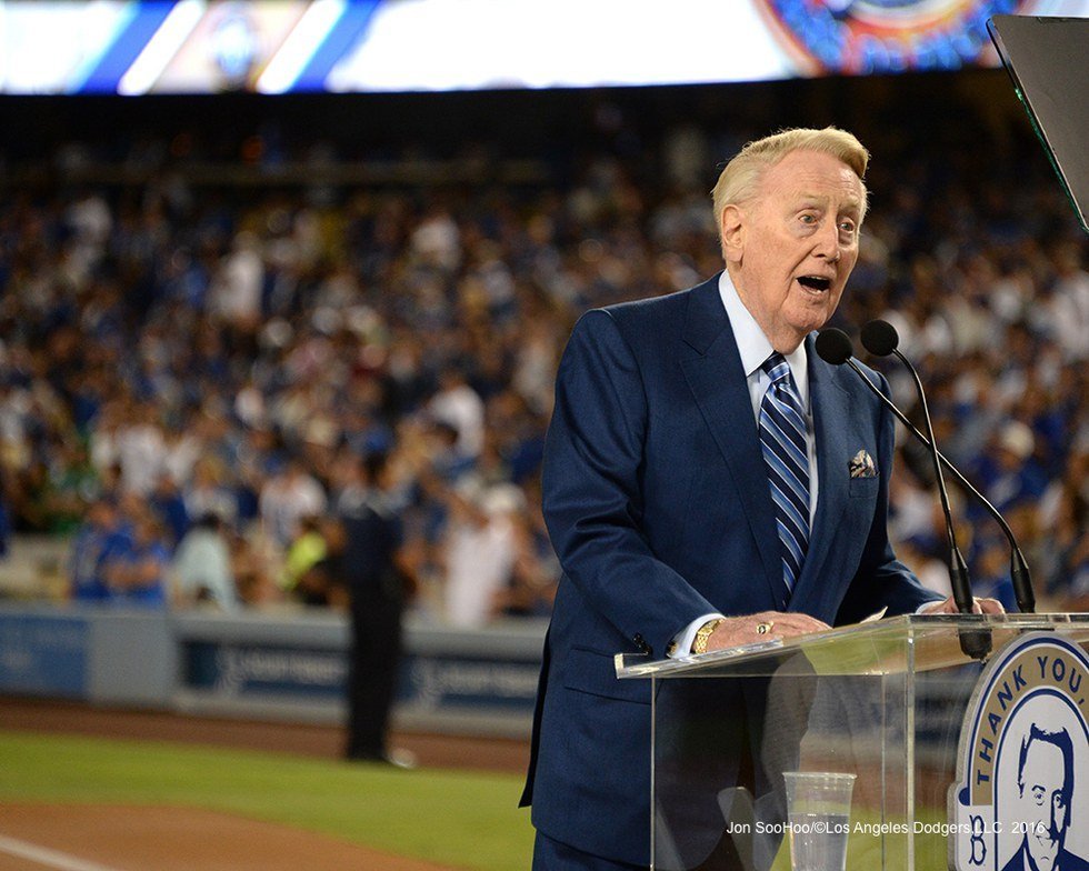 I have unconsciously listened to his voice my entire life. I can't really say when was the first time I ever heard him narrate a Dodger game because I was probably an infant. But I can still recall as a child, during long drives my dad would at times change the radio station to check the score, and of course hear an update from Vin.