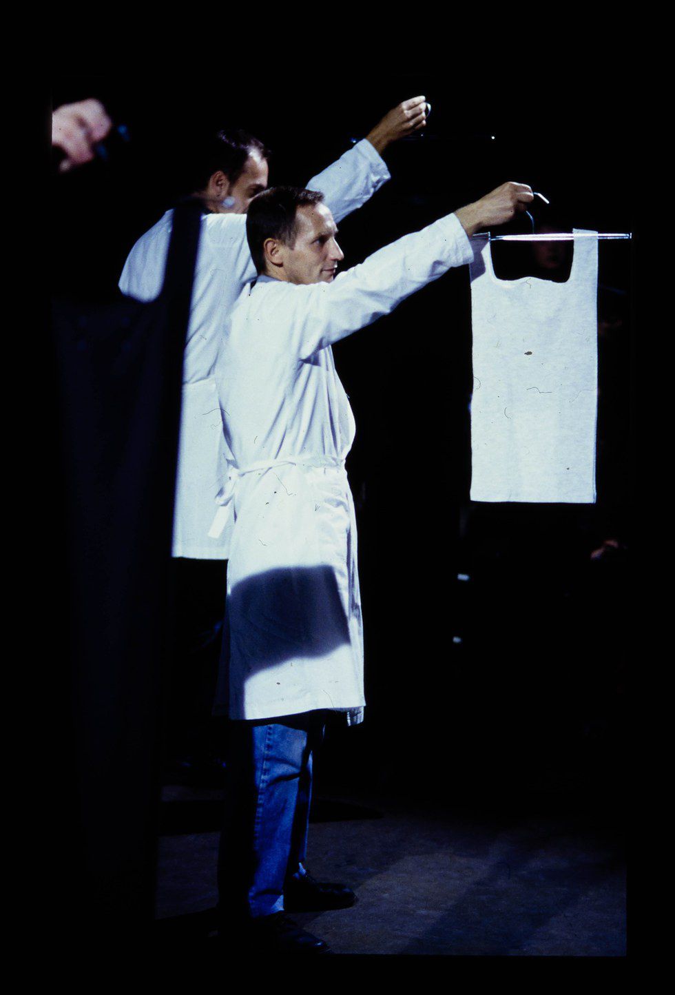 Spring/Summer 1998- This runway consisted of men in white lab coats who presented the collection hanging on hangers while a video of models wearing the clothes played in the background.
