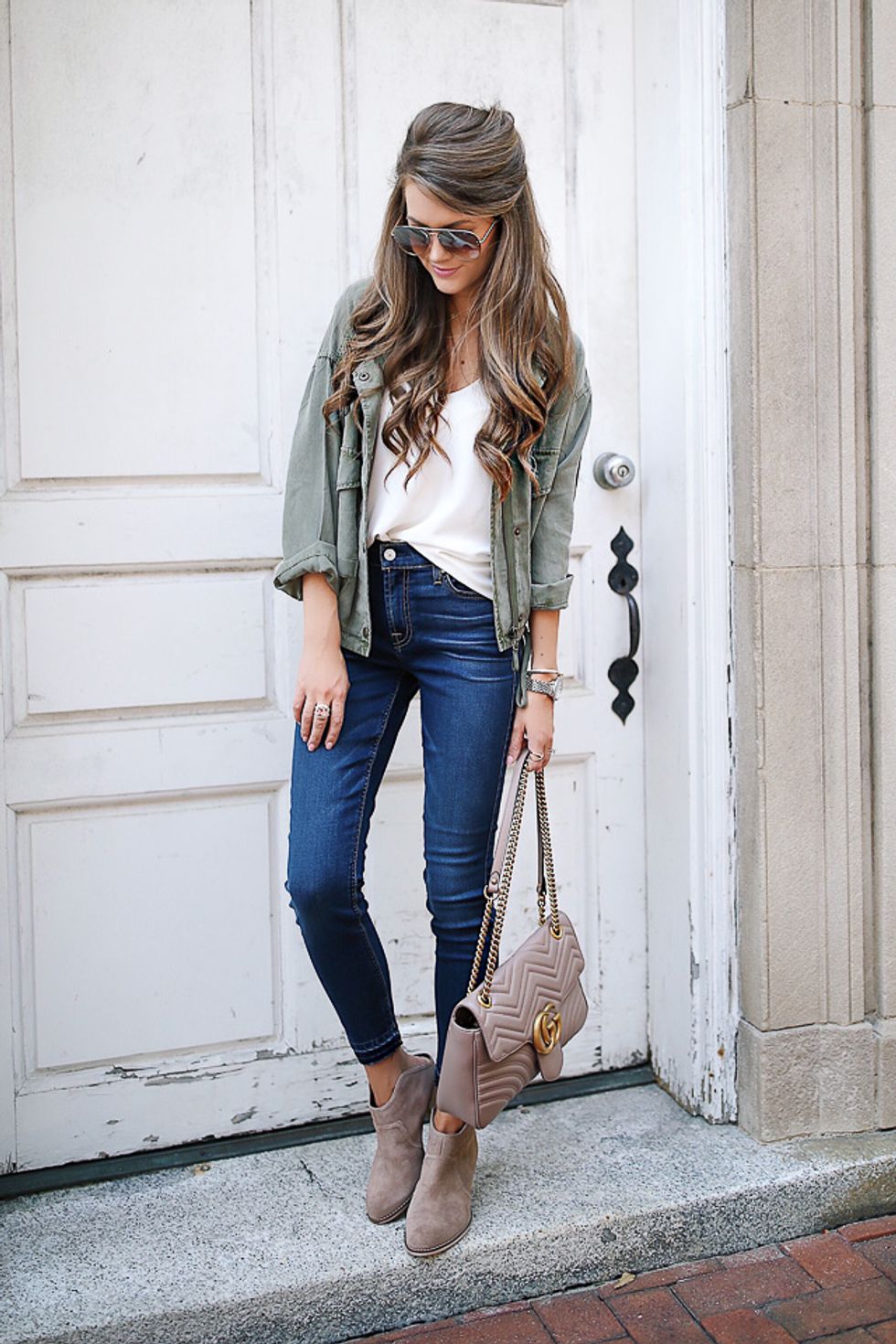 A cotton utility jacket, a striped white tee, and distressed jeans are one of my GO-TO Fall outfits. Casual, yet fashionable enough for a dinner date, this look will never fail you. Last year I got a similar style by BP at Nordstroms and I absolutely love it.