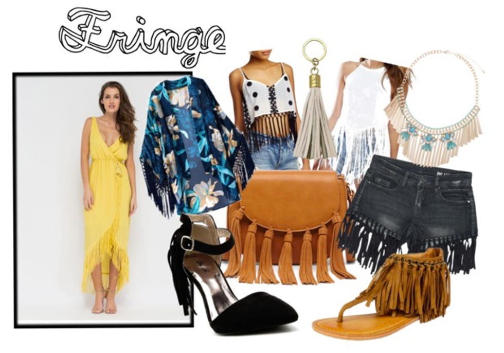 Festival wear is all the rage—especially since summer begins festival season. Fringe is one of the more versatile festival trends. If you are looking for casual wear, this is a great one. There are endless options between shoes, shorts, dresses and tops. A fringe pair of shorts or sandals are a great start to this trend. When it comes to wearing fringe to work, you can incorporate it by wearing a fringe necklace or fringe accented pumps.