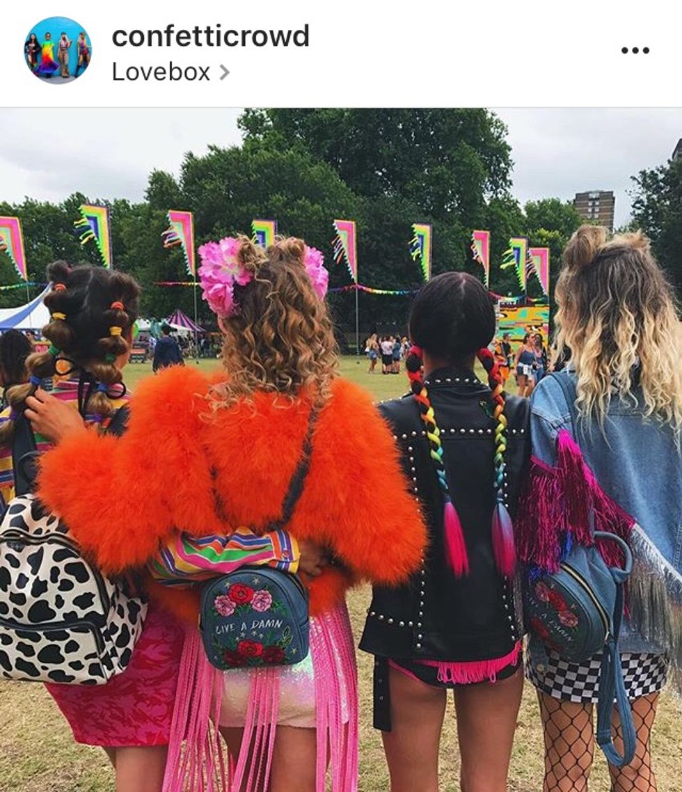 The ultimate style guide for the festival-goer. The Confetti Crowd is a group of girls who travel around, wearing wacky collections of homemade styles in crazy colours and patterns. Perfect for parties and concerts too.