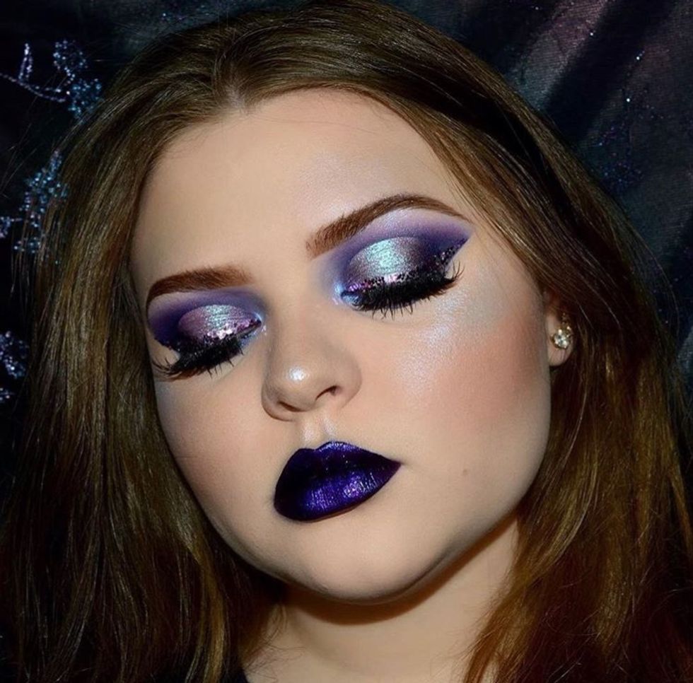There is nothing more satisfying than getting the perfect blend of your shimmery eyeshadow... OK, maybe getting the perfect winged eyeliner is. Deep purple makes every eye color pop, especially with the addition of chrome glitter. Spruce up your look with a matching lip color or purple high lighter.