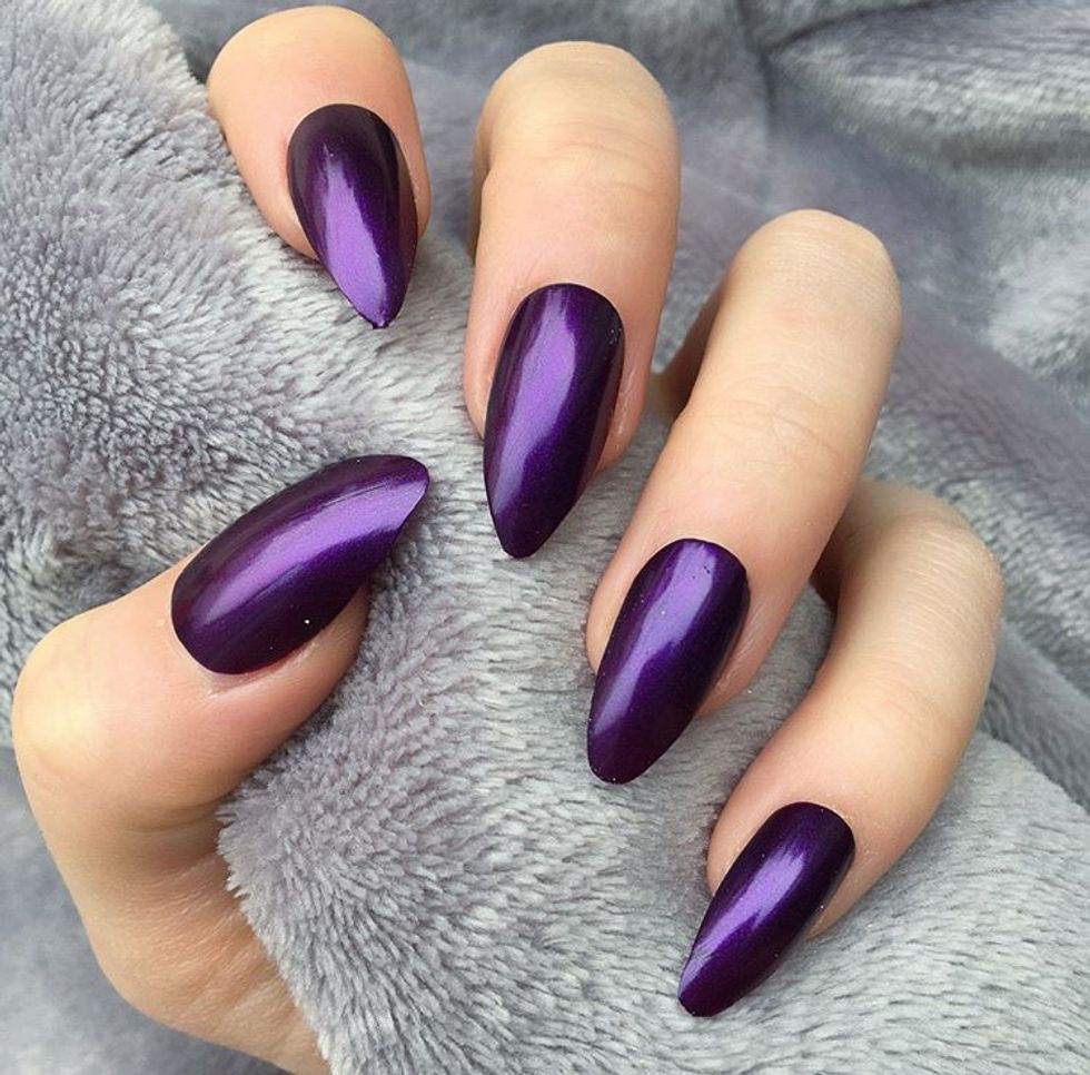 Ultra violet purple belongs on nails. It's shimmer and deep hue makes every skin tone pop. This shade is not too dark to wear in the summer, as it changes pigmentation as different light hits it. Shape your nails any way you want for the classic bad *ss look.