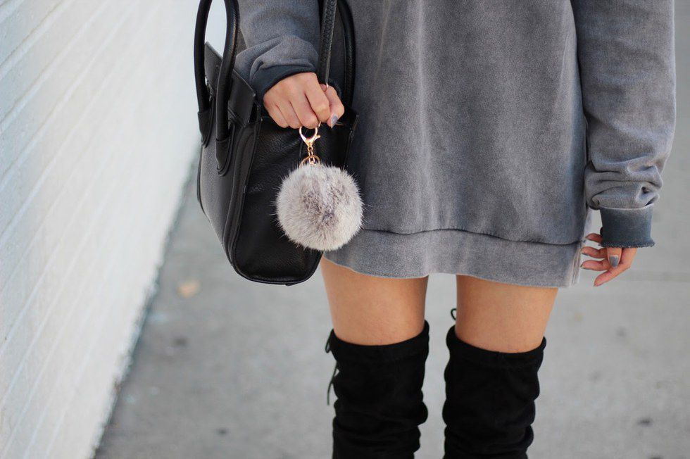To be honest, I'm not sure what the whole trend is about adding a pompom key chain to your bag or keys. However, I guess adding a ball of fluff to your wardrobe is considered fashionable these days. They're definitely cute though!