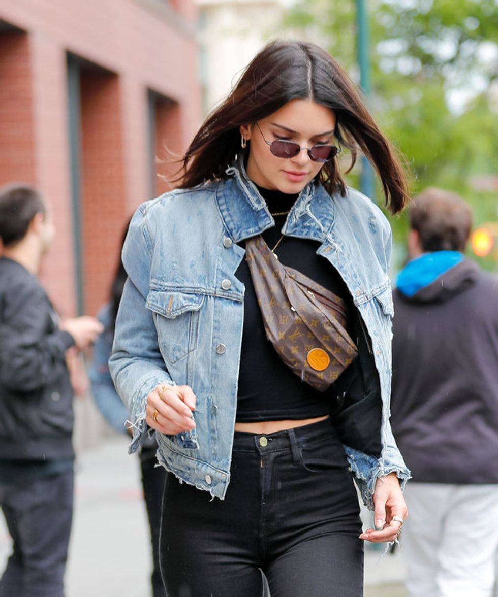 Models Kendall Jenner and Kaia Gerber introduce a new way to style the mom-associated accessory, the "bumbag." Taking the British term for the fanny pack, the bumbag is draped across one's shoulder, crossing the front of the body. Since this trend made a comeback, stores like Urban Outfitters have stocked their stores with a variety of these cross bodies from brands Adidas and FILA.