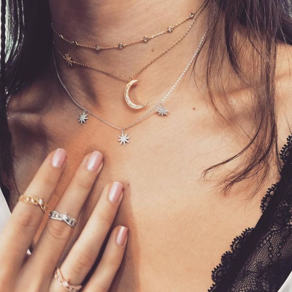 The fashion world has seemingly taken a step back from accessorizing with jewelry. A few layered necklaces are a simplistic way of adding detail to an outfit without taking away from the look. Here's ann added tip when deciding between gold and silver: gold tends to accent people with dark skin and yellow undertones while silver suits cooler complexions with rosy undertones.