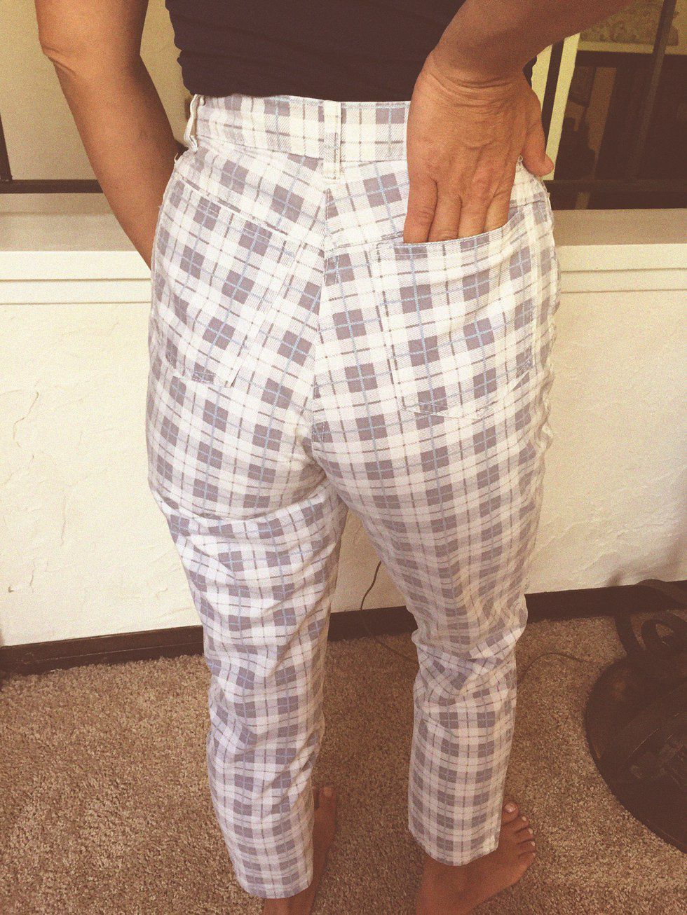 The print. The pockets that are on your back more than your butt. The fact that they are about two inches short from touching your bra. Nothing about these pants is OK.