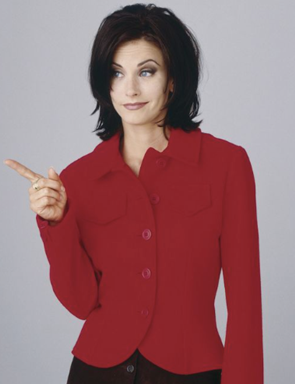 We all have a little Monica inside of us. Whether it be because of her insane OCD or her prior inability to say no to any kind of food, Monica is easily one of the most relatable characters on the show. But her relatability isn’t just due to her personality; it is also because of her timeless wardrobe. She kept most of her outfits simple and easy, usually jeans and a top of some sort. In spite of her simple style, Monica still frequently sported specific trends that are coming back into the market today- we’re talking about mom jeans and button-ups.