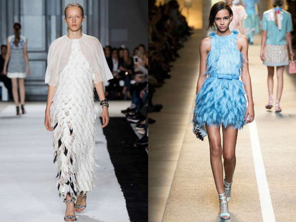 This one is for all of you Bohemian fashion lovers. Fringe and feathers can be seen on a variety of accessories and clothing items. Whether it’s fringe on a bag, kimono, dress, shirt, or skirt, or feathers on a dress, cape, or skirt, these two elements add a flirty and chic element to every outfit. Celebs like Blake Lively have been seen rocking this, and Fendi and Balenciaga have incorporated these into their Summer collections. For the cheaper options, Nasty Gal and Zara have many different fringe/feathery items to choose from.