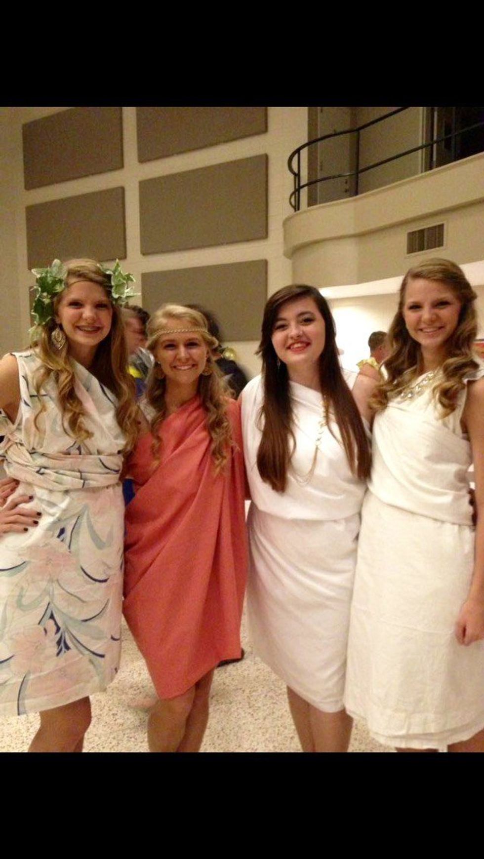 Now onto the fun part of the evening! After we all got cleaned up from the work we had done during the day, it was TOGA TIME. SGA at Faulkner hosted a Toga Party for all of the Social Clubs, so everyone got to know who they were and which one they could fit in the best. People showed up left and right wearing whatever they could find to make it into a toga. From bed sheets, to ENOs, to blankets and other various items of fabric, everyone had their own unique version of a toga. Yes I did have to have help even putting mine on, but still, my peach colored bed sheet was pretty awesome (if I say so myself). Chick-Fil-A catered and it was possibly the best and most nutritious meal us college students had eaten all week long. Everyone laughed and danced when the "Cubic Shuffle" came on. Overall, I applaud whomever is reading this and was apart of putting together this function. Kudos to you all who put forth effort into making this the best year yet at Faulkner for Social Clubs and student unity.