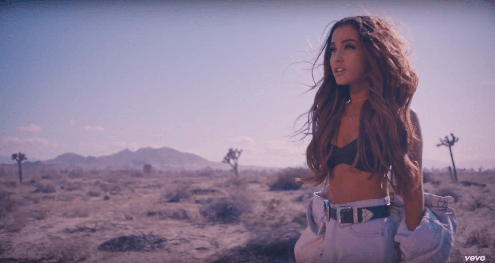 This is by far one of Ariana’s best videos. There’s a story of two lovers running away into their own sanctuary, which happens to be the Honeymoon Inn. Ariana’s outfit and hair are on point, and male model Don Benjamin looks stunning as well. The two are a hot and dangerous couple. Ariana and Don become more passionate as the song gets more intense, making for an exciting video.