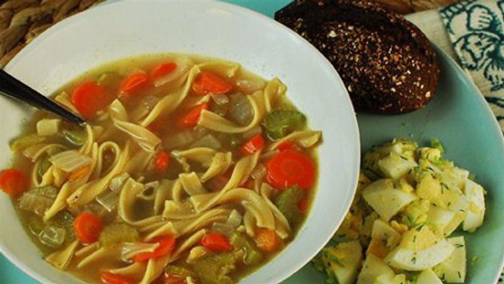 This is my favorite “I’m sick don’t bother me” soup. All you need is your choice of broth, your favorite shape noodle, celery, carrots, and your choice of seasoning! In my case I do not add chicken, and I love either a spiral or a flat noodle, but again it is all preference!