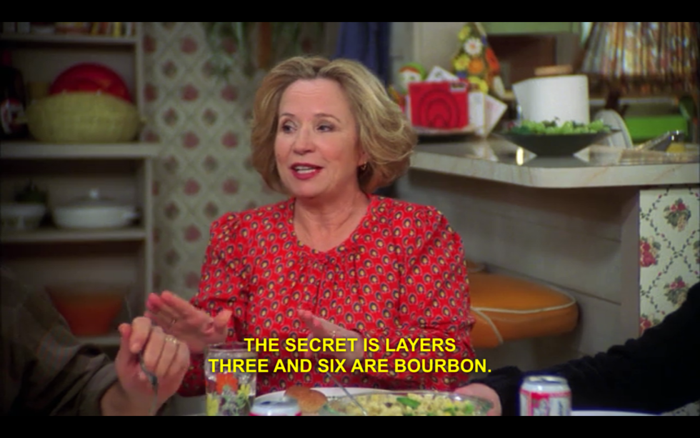 A night in with Lorelai Gilmore would be the best girls night you could ever imagine. First, we would buy A LOT of coffee from probably every coffee house we see. Then, we would buy a ton of snack foods. I am talking cookies, cakes, chips, pastries — whatever you could think of. She'd probably want to order in takeout as well. Then, she would fall in love with Netflix and Hulu. Again, this would be the ultimate girls night in.