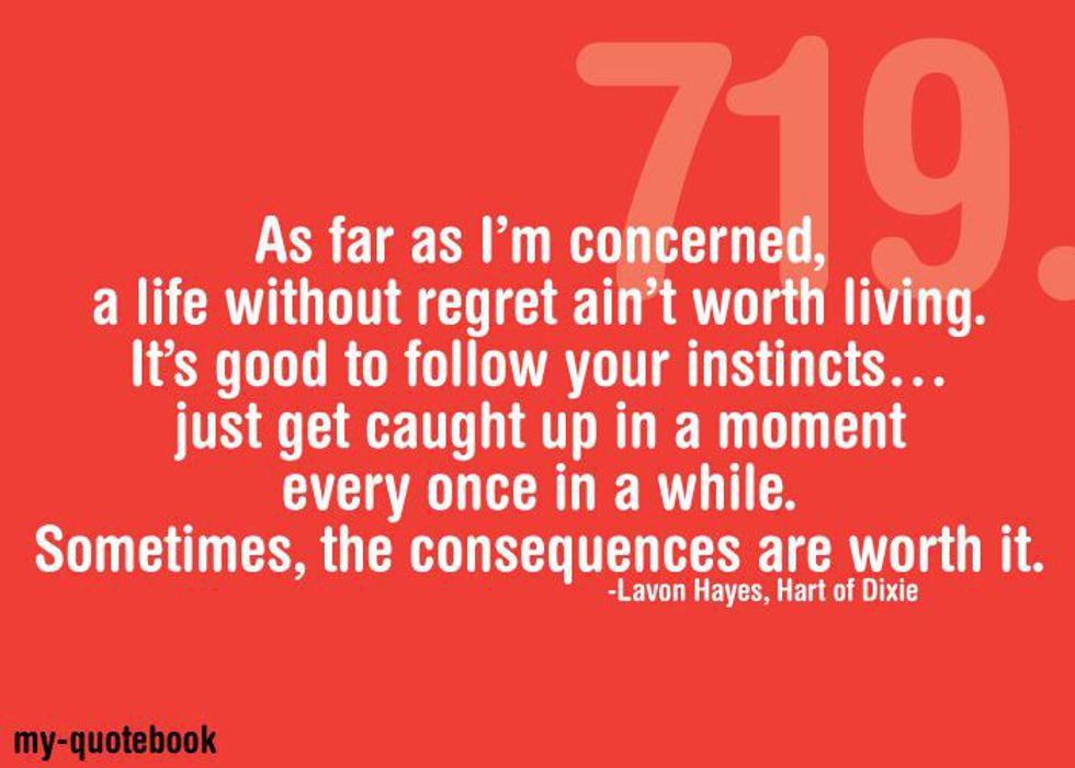 12. "As far as I'm concerned, a life without regret ain't worth living. It's good to follow your instincts... just get caught up in a moment every once in a while. Sometimes, the consequences are worth it." - Lavon Hayes, "Hart of Dixie"