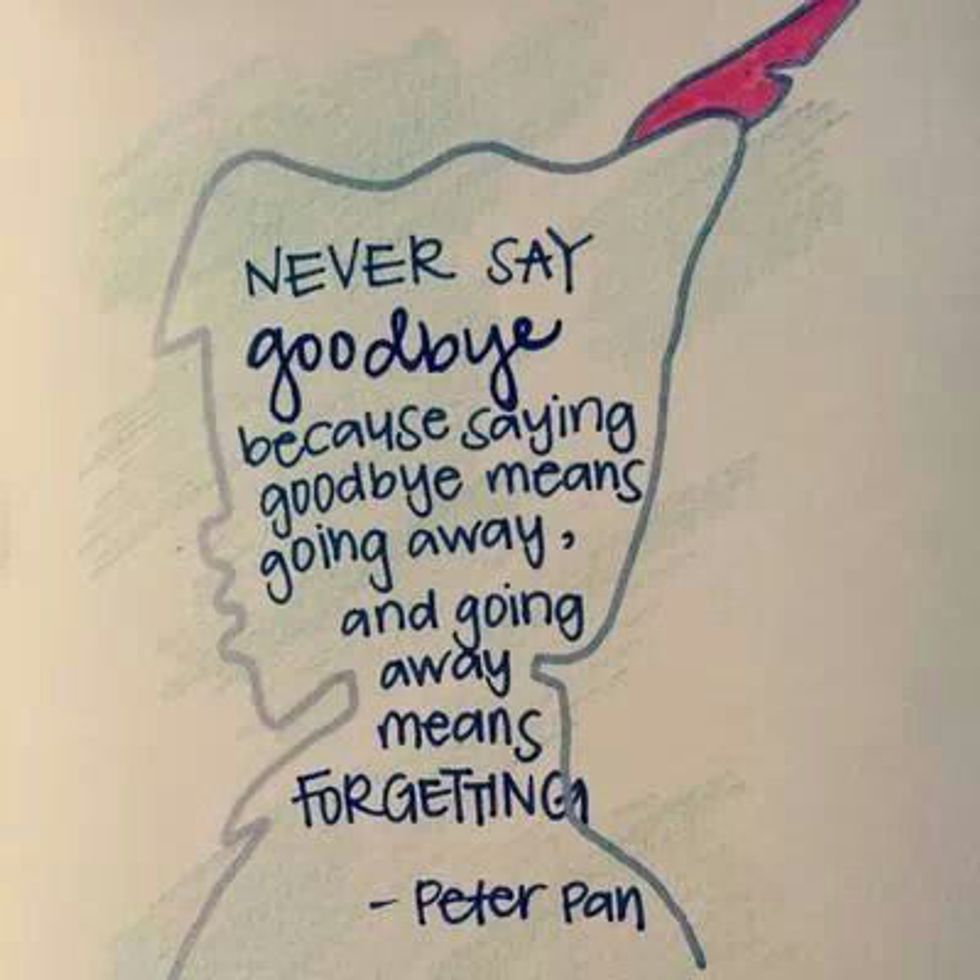 20. "Never say goodbye, because saying goodbye means going away and going away means forgetting." - Peter Pan, Peter Pan