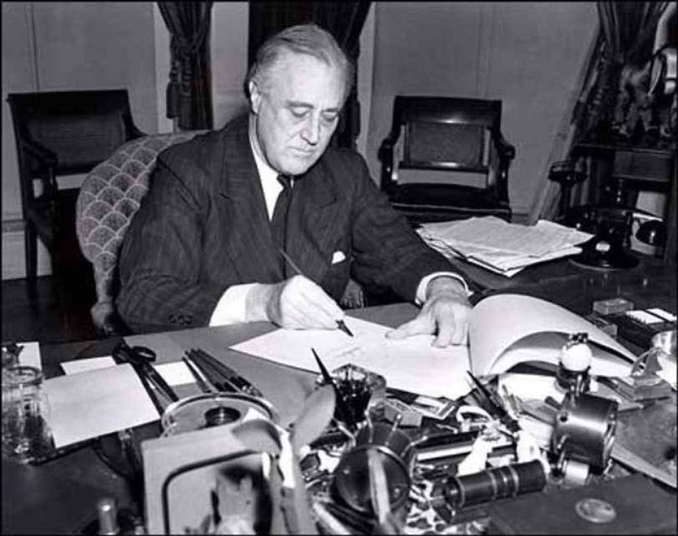 As far as FDR’s social policies, they too differed from his New Deal days. FDR would instill a censorship of the media, the likes of which included not displaying the events of Pearl Harbor. He believed that the photographs of the Pearl Harbor attack, and of the photos of the fallen soldiers in both theaters of war. Along with this, FDR established a law that all post that was sent from the soldiers to their loved ones back home be edited. FDR understood that espionage was a part of warfare, in editing the troops’ letters, he would protect the soldiers’ locations, objectives and other military interests.