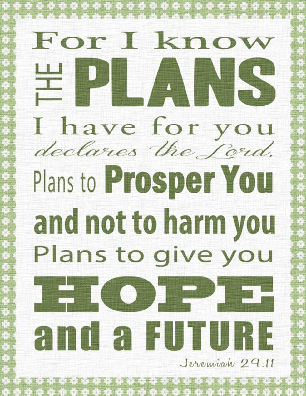 Not knowing what your exact plan is can be scary, but I have faith that God will lead me on the path I am meant to follow. Jeremiah 29:11 says "For I know the plans I have for you, declares the Lord, plans to prosper you and not to harm you, plans to give you hope and a future." In the end, everything will work out according to God’s plan, but in the meantime, putting our hope and trust in him can make the journey so much easier. Because of my relationship with God, I have learned to be more patient and not worry as much about what I am meant to do. In time, I will discover more of my passions and let the spirit lead me in the right direction.