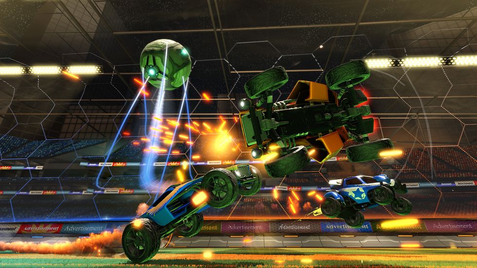 The game is set in an enclosed arena. A big ball is dropped in the center and both teams speed to the middle to attempt to score the ball. Players can drive on the walls and the ceiling. There are turbo boosts all over the map that you have to drive over to use a speed boost. Acrobatic jumps and shots as you try to score the ball makes this game extremely exciting!