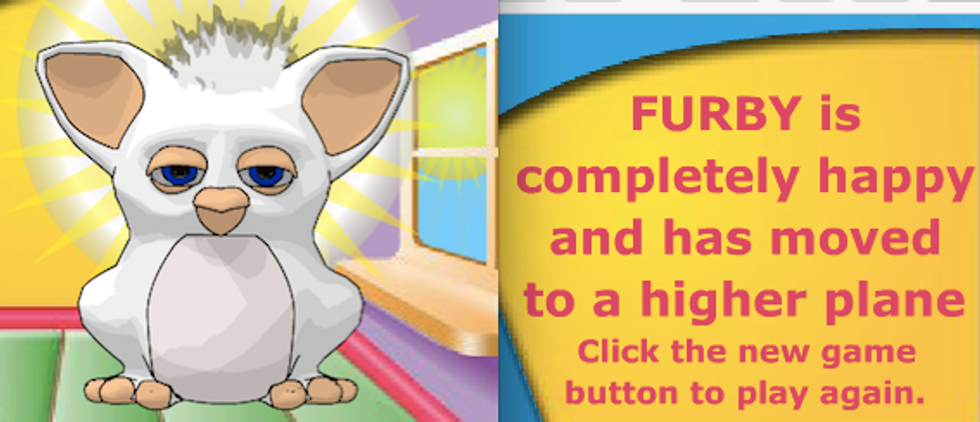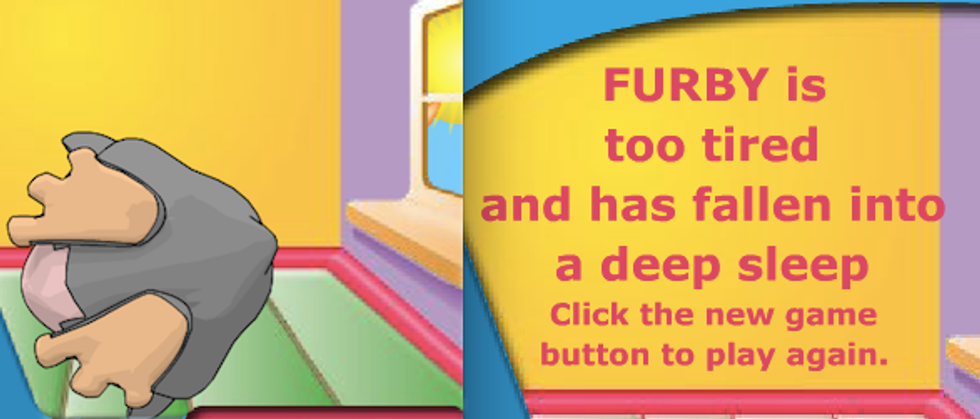 If you keep Furby alive for your arbitrary number of programmed cycles, you win, though I use the term "win" very lightly here. There was no goal, except to reach the end of the chosen time limit. The only objective was to maintain mediocrity. The congratulation and its accompanying smatter of stock-sound-effect applause feel hollow. Furby will never know what it's like to be happy or sad, but you did your job, damn it, and that's all Mrs. Friglewitz can ask of you.