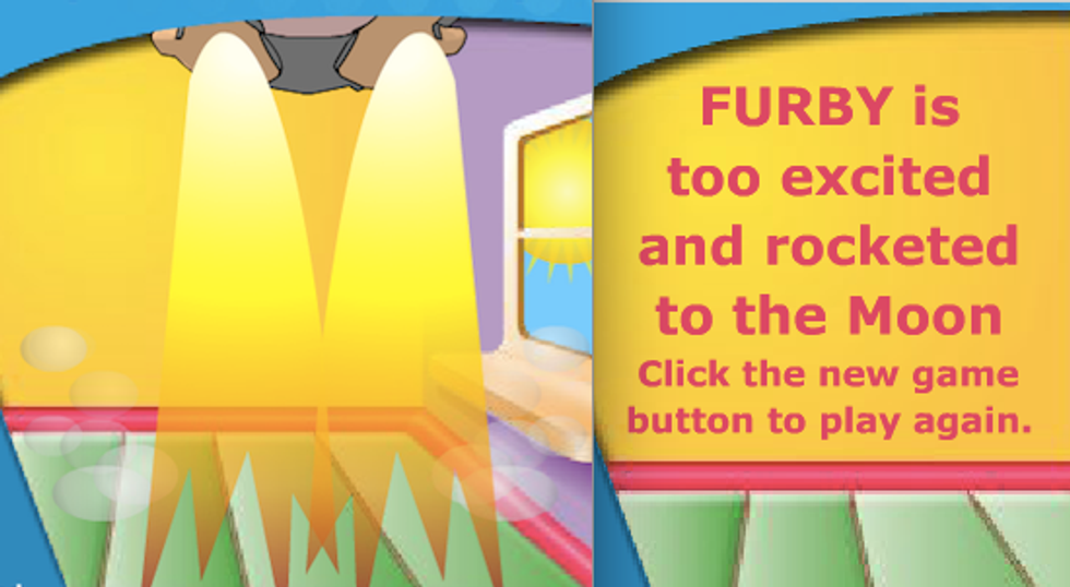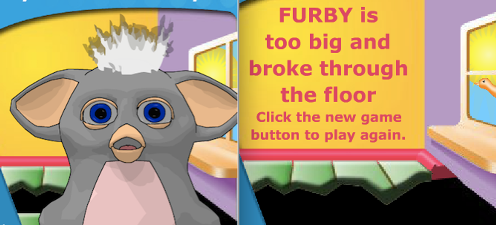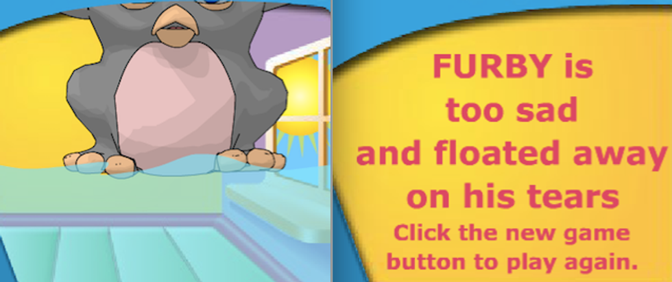 As it was one of the more interactive options on Hasbro, I ended up playing Feed My Furby a lot. However, do not conflate engagement with enjoyment. For every time I finished a round of Feed My Furby, I felt a little more confused, a little more upset, and a little more afraid than I was before. Malaise in Flash game format. The game has long since been removed from the website proper, but the Internet never forgets, so I revisited the pixellated kitchen where I learned what trauma was.