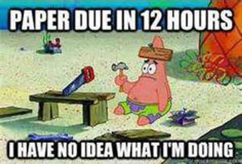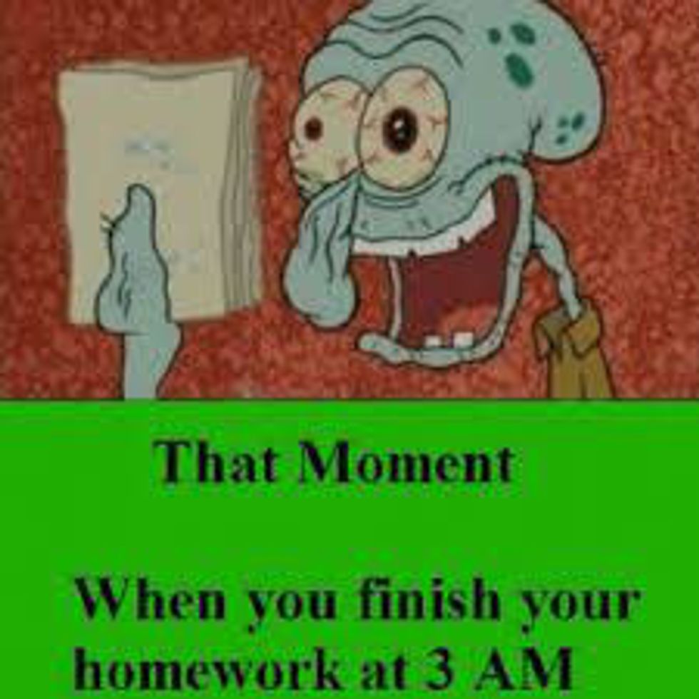 Spongebob is a show most of us college students watched when we were little and he is a very relevant source for knowing what it feels like to study and fail. I mean how many episodes did he spend inside of Mrs. Puff's Boating School? Well, are you ready kids? because here are feelings you probably had in your first semester as told by Spongebob Squarepants