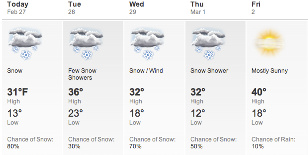 If you still have school or work but cannot make it during the snowstorm, please check in with your teachers or your boss to see if you can work from home or meet with them outside of class hours. Usually, when a snowstorm hits, there will be an absence of people from work or school.