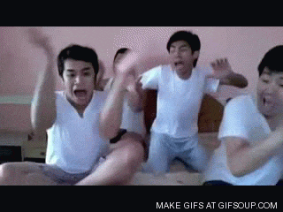 Getting more and more excited by the minute. You also stand up because you know you're going to make some people deaf with the screaming you're about to do.