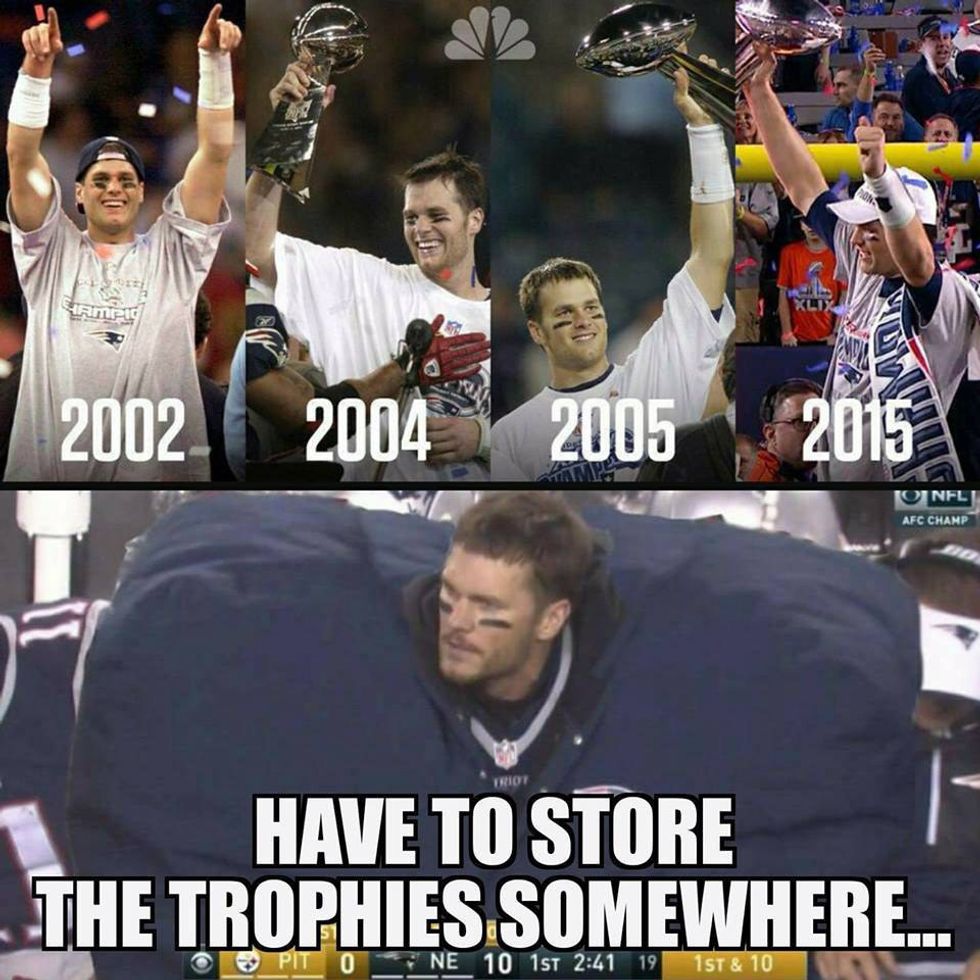 After the New England Patriots win the AFC championship, it feels pretty good to know once again we are going to the super bowl. The entirety of last season was overshadowed by the “deflategate” scandal that surrounded Tom Brady and this season he accepted a four-game suspension. If anything this suspension just proved to the rest of the NFL that the Patriots aren't just great because of Brady. During the four games of the suspension, we went through both of our backup quarterbacks and ended up with a 3-1 record just for those four games. Along with Brady, Gronk is also considered a key player in the Patriots Offense. However, due to an injury, he has missed several games this year including the AFC Championship. This season the Patriots have proven that they are more than just a one-man team, and we, as fans could not be more ecstatic to see them in Super Bowl 51. Here are some gifs and memes featuring our favorite team just to show how excited we are.