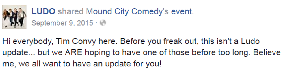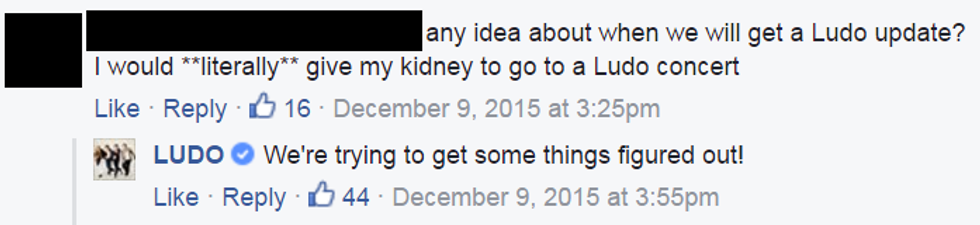 The note that I close with is one that resonates with anyone who is a fan of a band that isn't active currently. Whenever I see anything even remotely hinting that Ludo might do something, I kind of freak out a little. OK, I won't lie. A lot. Remember when My Chemical Romance fans practically started foaming at the mouth a couple weeks ago because of a video they posted? That's basically me (and some other members of the Ludo fanbase) when they post anything. Here's the top five of my best-worst moments.