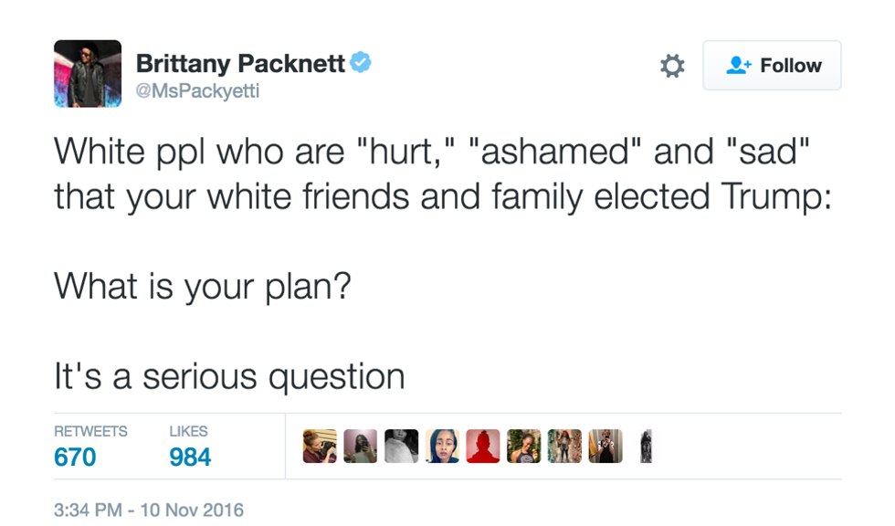 A shoutout to @MsPackyetti for her tweet that gave me insight into how I can be a better feminist ally post-2016-election.