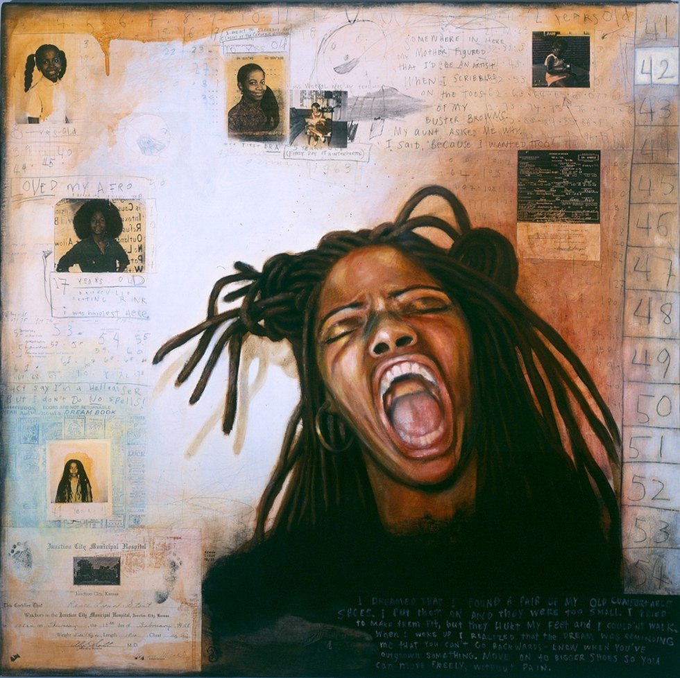 Renee Stout is the kind of storyteller that I aspire to be. Her exhibit: "Tales of the Conjure Woman" is currently installed in my local art museum and it is such a trip. She has created the fictional character, Fatima Mayfield, who is used to portray truths about romantic relationships, finance and internal struggles. While wandering through this exhibit, I could've sworn that Fatima was a real person; I was truly placed into her world as an herbalist/fortuneteller. An amazing artist with an even more amazing story to tell, Renee's work will truly inspire.